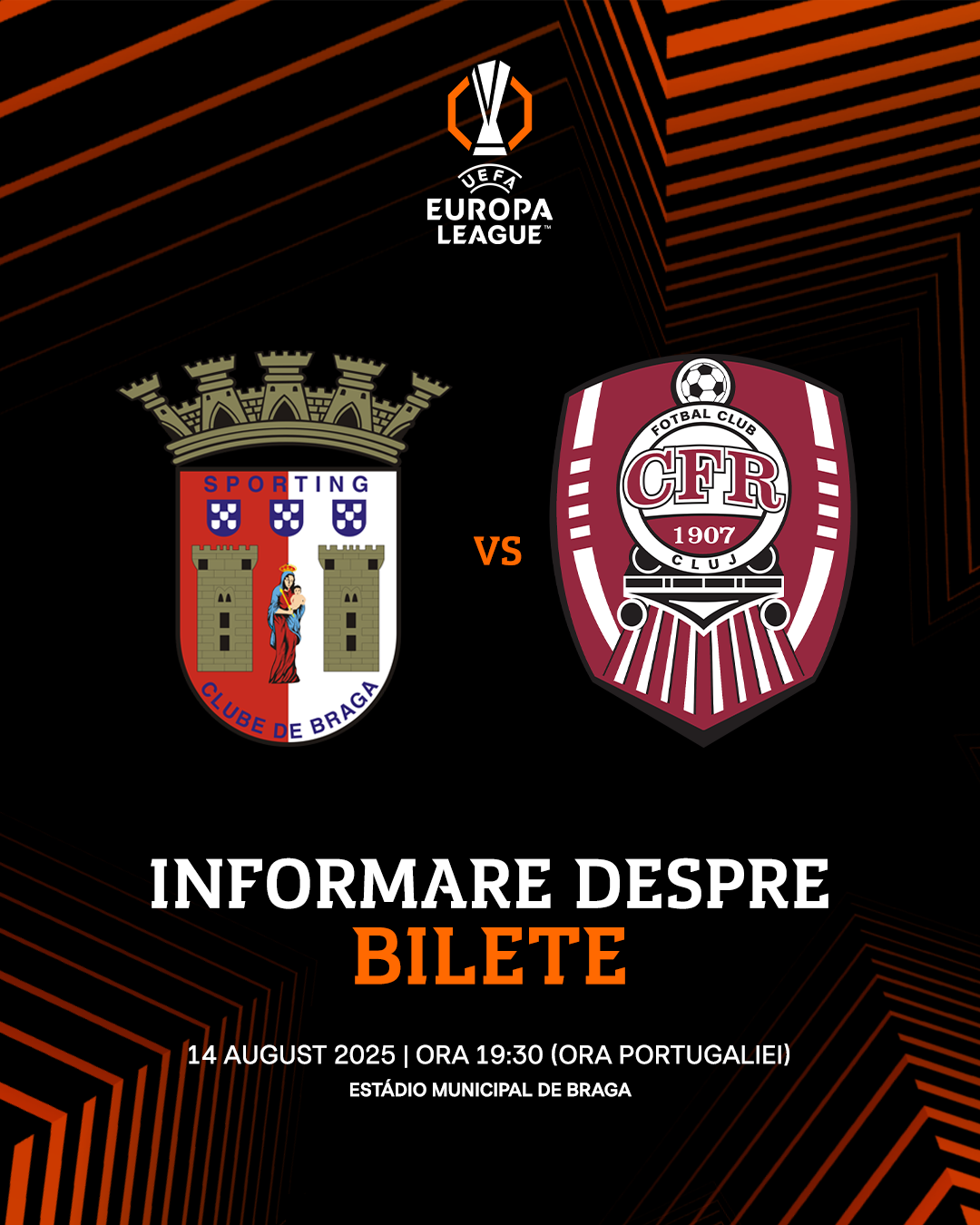 🚂 CFRiști, mâine, 12 august, vă puteți achiziționa, EXCLUSIV de la casele de bilete din Gruia, tichete pentru duelul din Portugalia cu Braga, programat în 14 august, de la ora locală 🇵🇹 19:30!