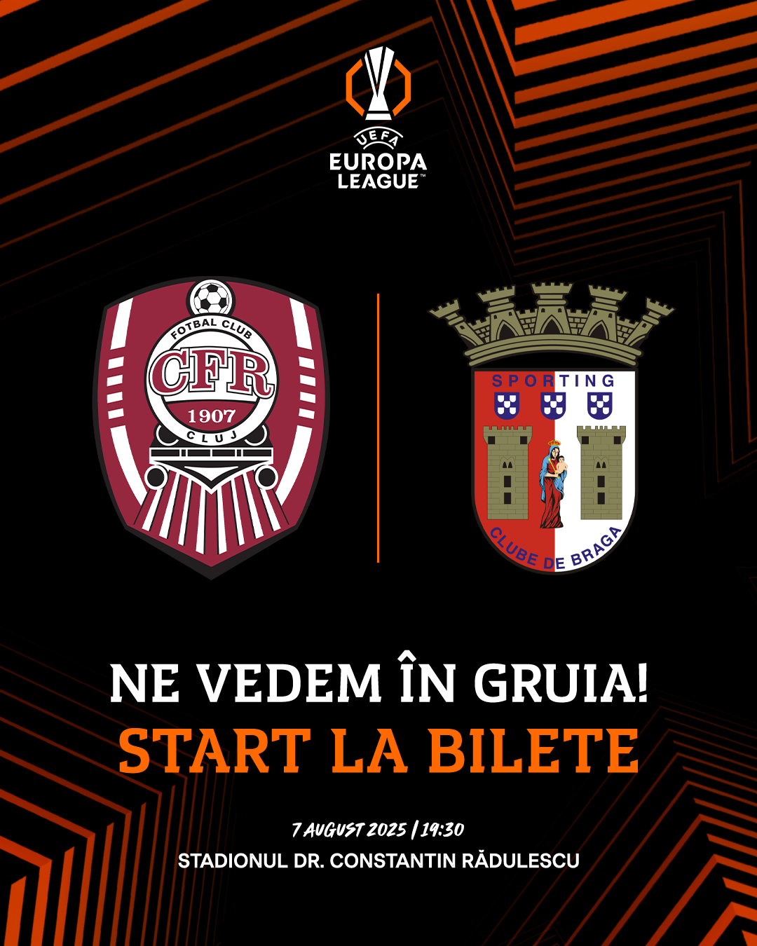 📢 CFRiști, ne așteaptă un nou duel european în Gruia! După 13 ani reîntâlnim SC Braga în prima manșă din Turul 3 preliminar al UEFA Europa League! Vă așteptăm în număr cât mai mare joi, 7 august, de la 19:30, să ne susțineți din tribune! 🏟