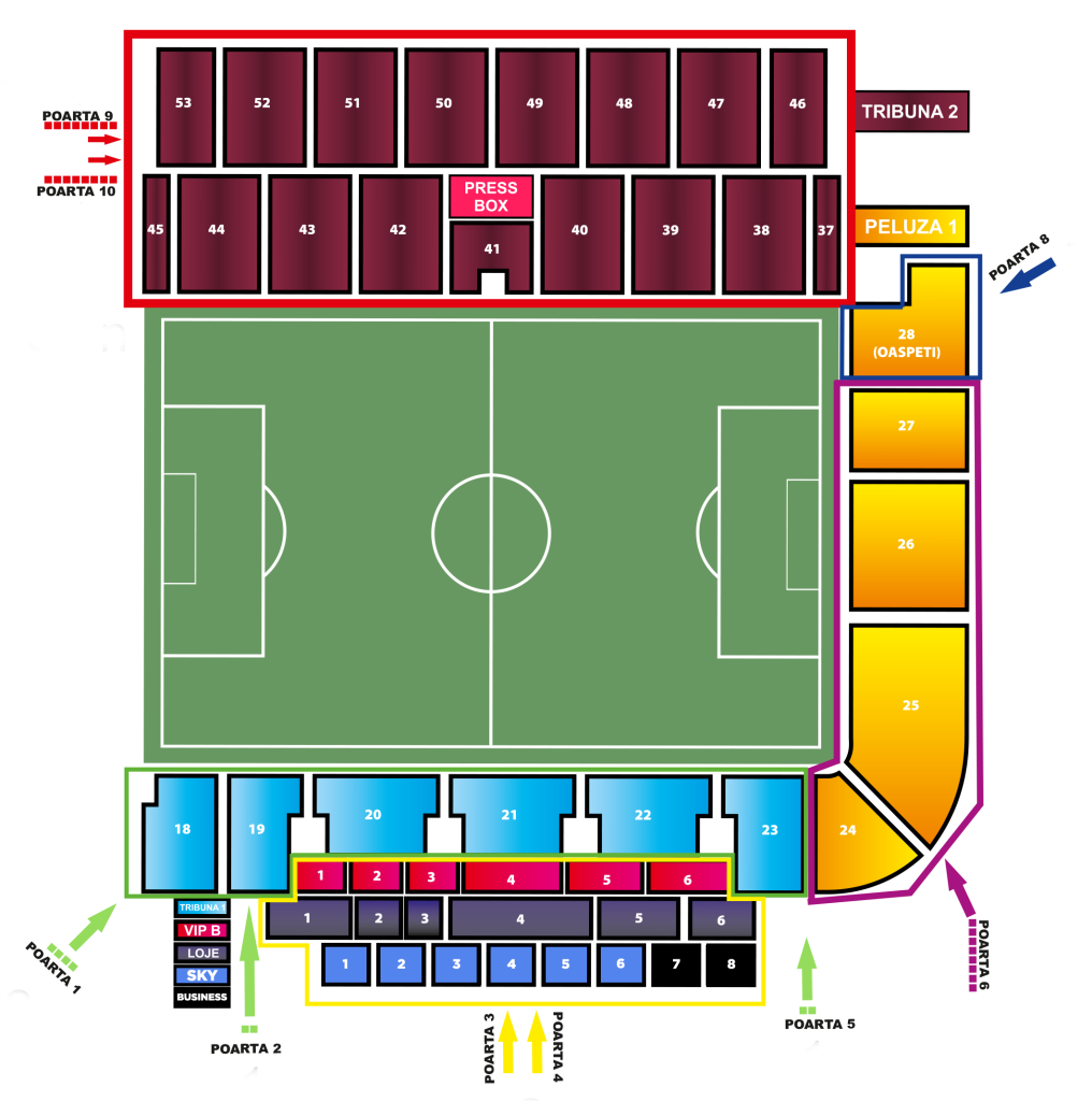 👉🏻 suporterii echipei oaspete își vor putea achiziționa tichete la derby de la propriile case de bilete de la Cluj Arena, în Peluza 1, sectoarele 28, 27, 26, 25 și 24, accesul acestora urmând a fi făcut astfel: