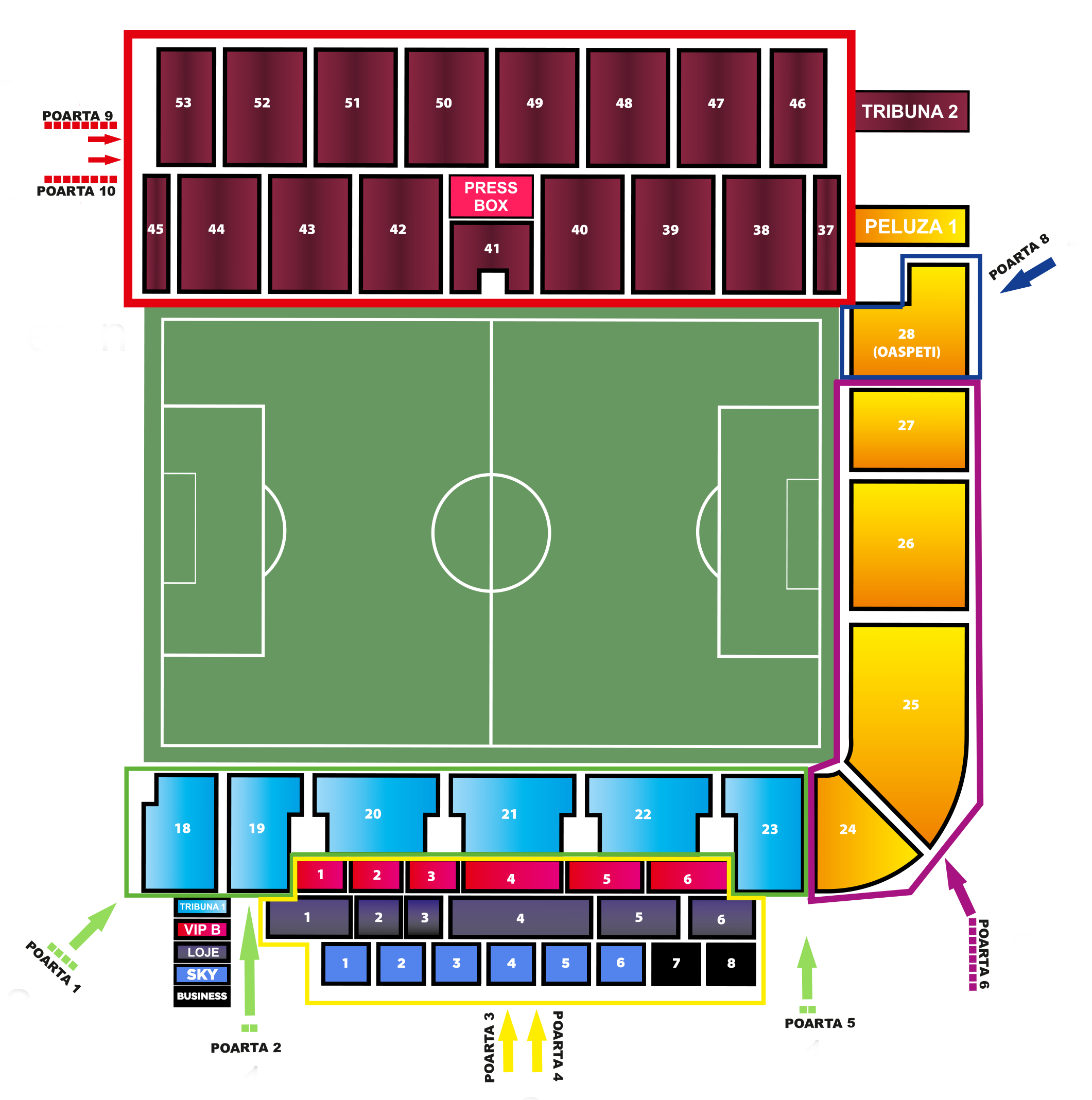 – sectoarele 27, 26, 25 și 24, cu acces din Strada 11 Octombrie (Poarta 6) – fără recuzită de galerie