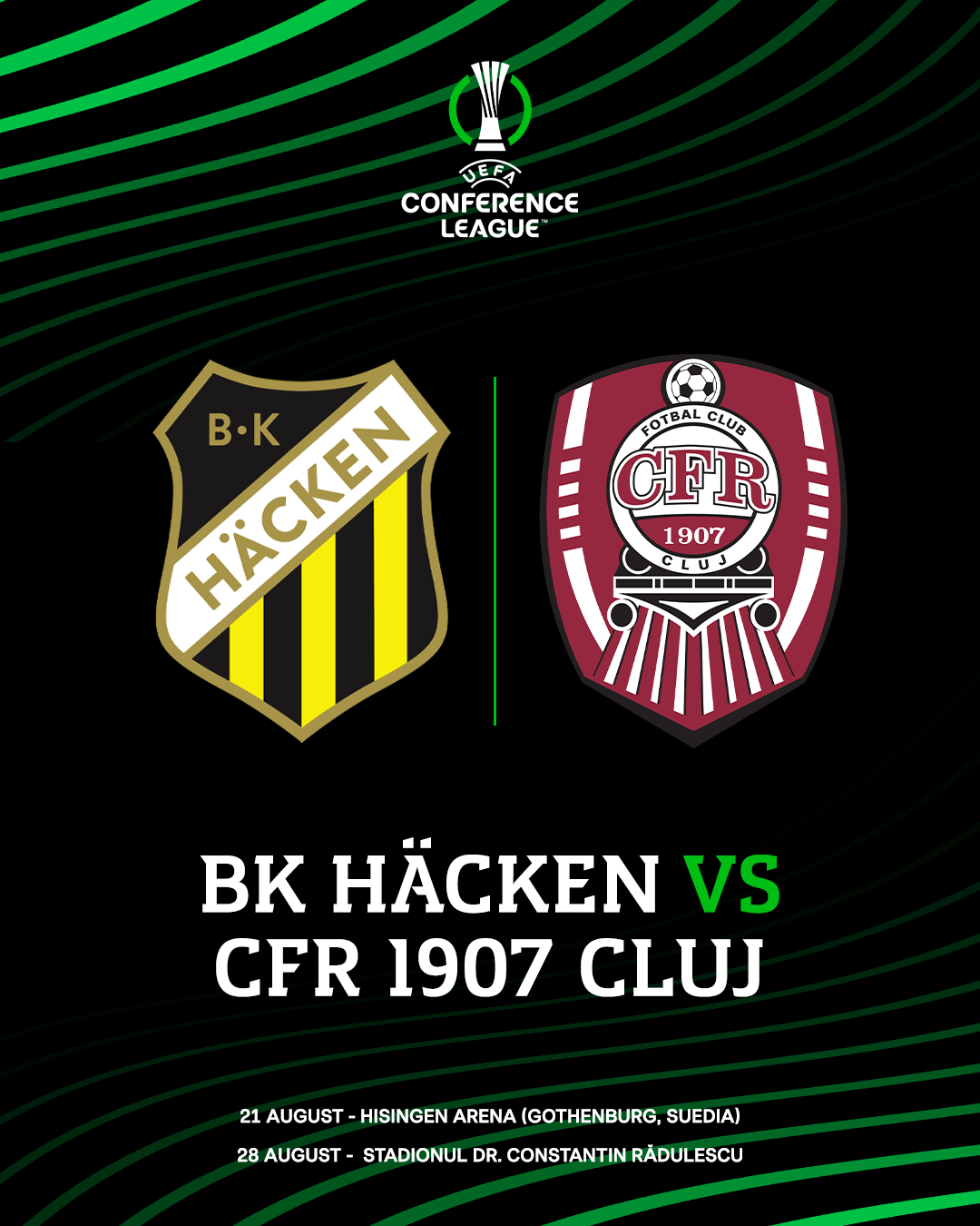 15-aug.-2025 00:04 listat in Campionat, Fotbal, Liga 1, Echipa 📢 BK Hacken este următoarea noastră adversară din play-off-ul Conference League 🟢 📍 Manșa tur se va disputa joi, 21 august, la Gothenburg, Suedia, iar returul se va juca la Cluj, pe 28 august 🔜 Hai CFR! 🚂
