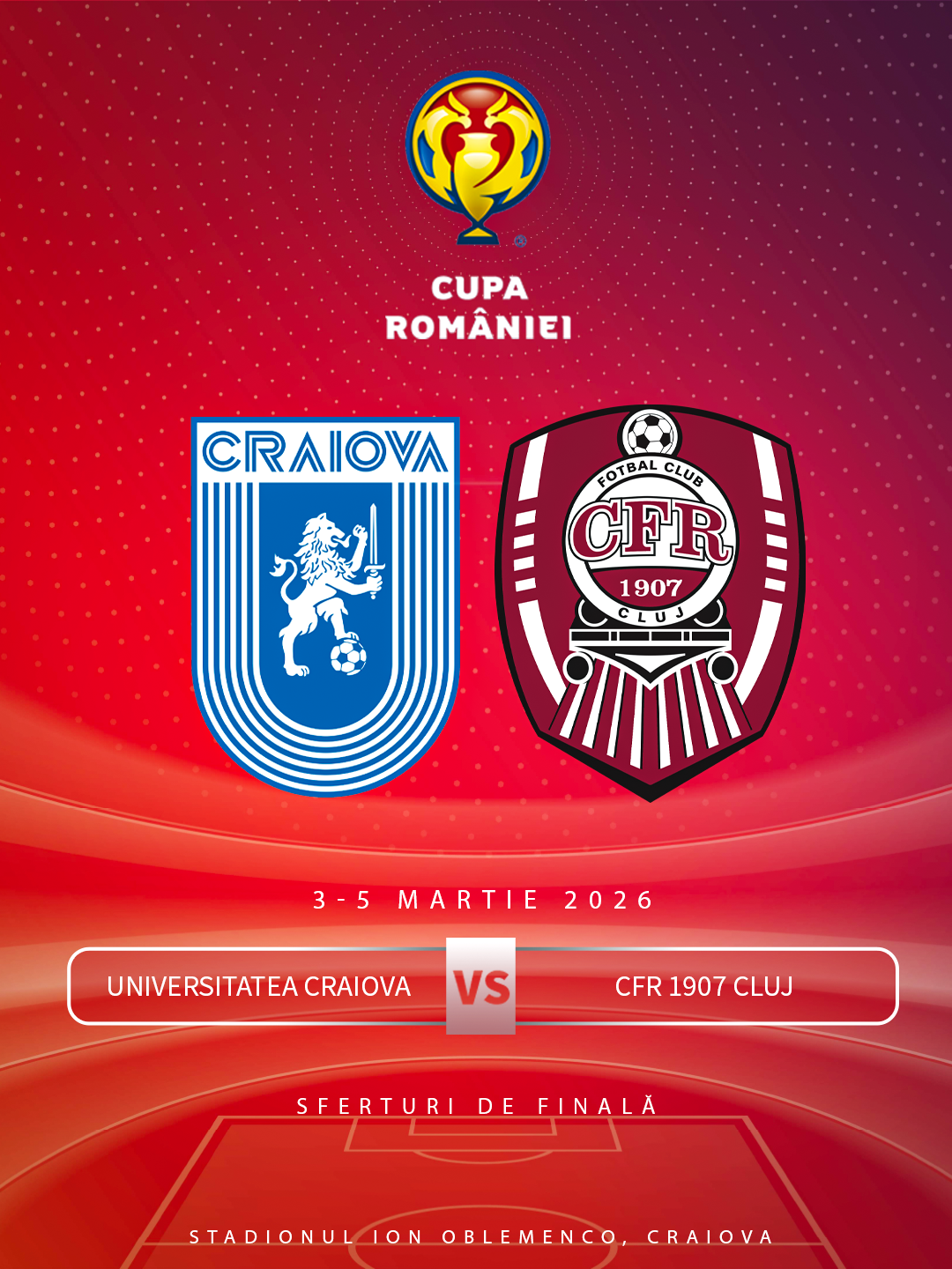 Universitatea Craiova este adversarul nostru din sferturile Cupei României 🏆 🔜 Partida se va disputa în Bănie, la începutul lunii ...