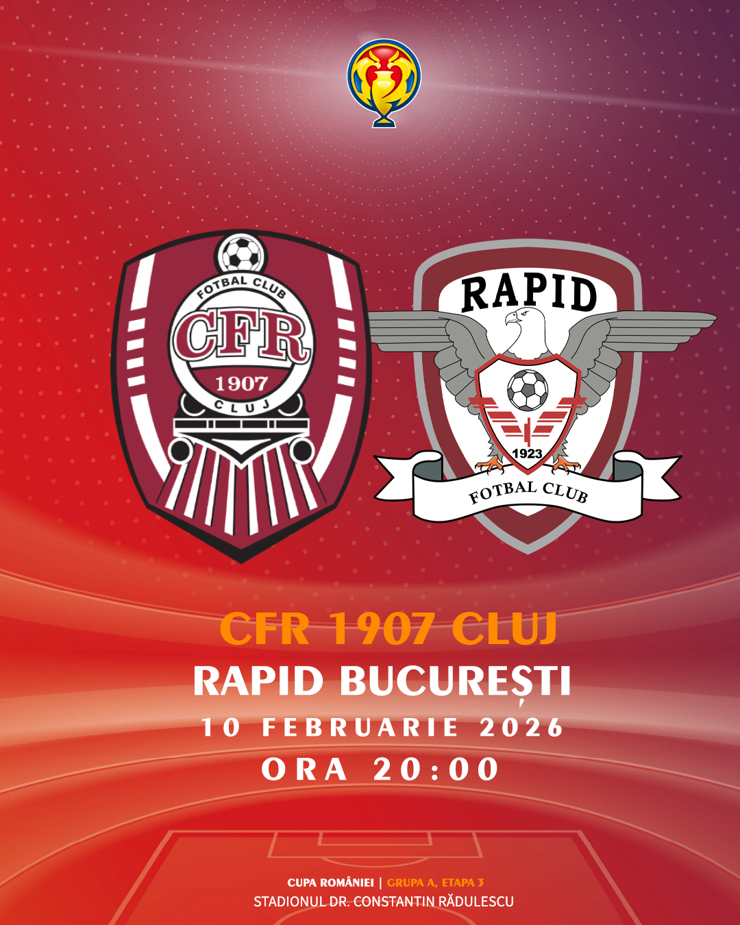 📢 CFRiști, în doar două zile ne revedem acasă pentru duelul decisiv din Cupa României! Vă așteptăm în Gruia la meciul cu Rapid de marți, 10 februarie, de la ora 20:00, să luptăm împreună pentru calificarea în sferturile competiției! ⚽