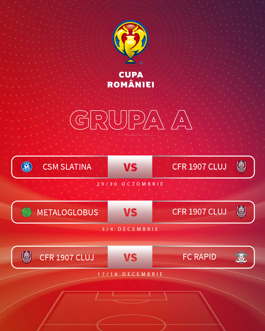 📄 Conform noii împerecheri anunțate de Federația Română de Fotbal, CFR Cluj va disputa primele două meciuri din Grupa A a Cupei României în deplasare, iar ultimul meci, acasă, în Gruia 🏟