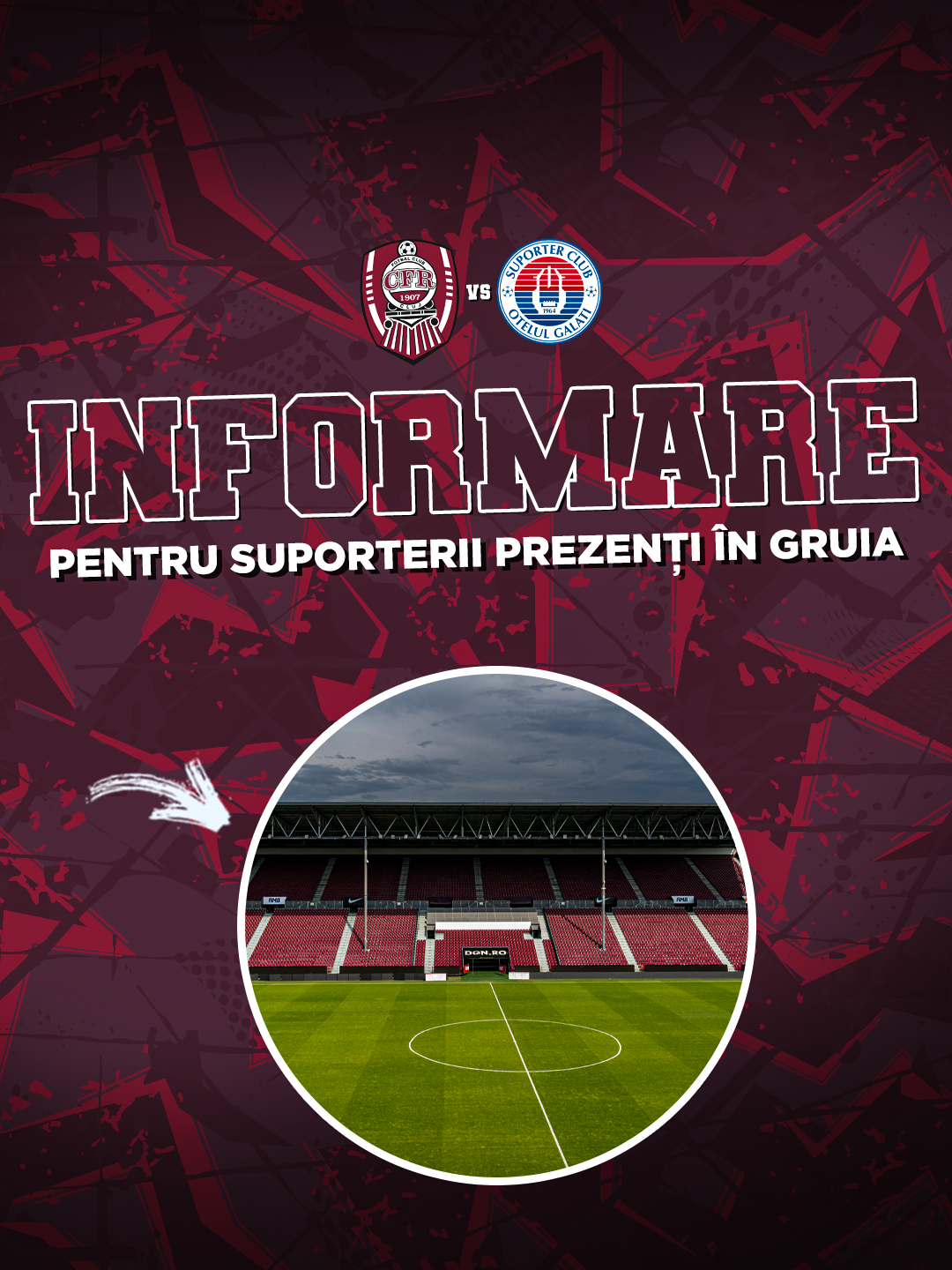 📢 CFRiști, ne dorim ca revenirea voastră în Gruia la primul meci din an să fie lipsită de probleme. Astfel, având în vedere condițiile nefavorabile din ultimele zile și precipitațiile abundente, dar și temperaturile extrem de scăzute care favorizează formarea gheții, clubul nostru a decis ca pentru acest meci să fie deschisă exclusiv Tribuna 2, aceasta fiind și acoperită în caz de precipitații pe parcursul meciului 🏟